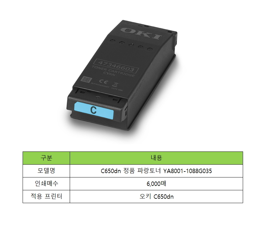 HOME > 전체상품 > 오키 C650dn 토너 YA8001-1088G035 파랑 정품토너 6K