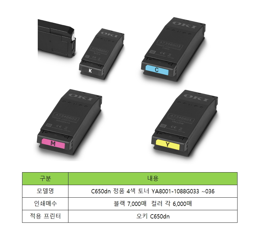 HOME > 전체상품 > 오키 C650dn 토너 YA8001-1088G033 ~ G036 4색 정품토너 블랙 7K 컬러 각 6K