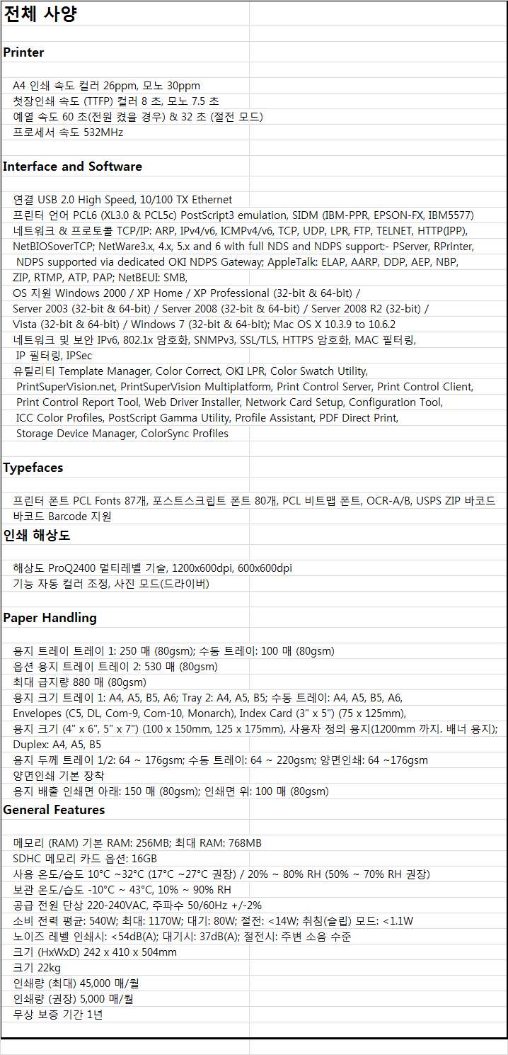 HOME > 전체상품 > OKI C530DN 프린터/컬러레이저/양면인쇄/유선네트워크/컬러26매,흑백30매/USB/A4[기본토너포함][강서C&S]