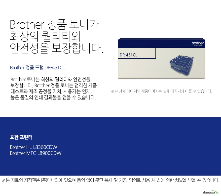 HOME > 전체상품 > 브라더 DR-451CL 정품 드럼 4색세트 MFC-L8690 MFC-L8900 CDW HL-L8260 HL-L8360CDW