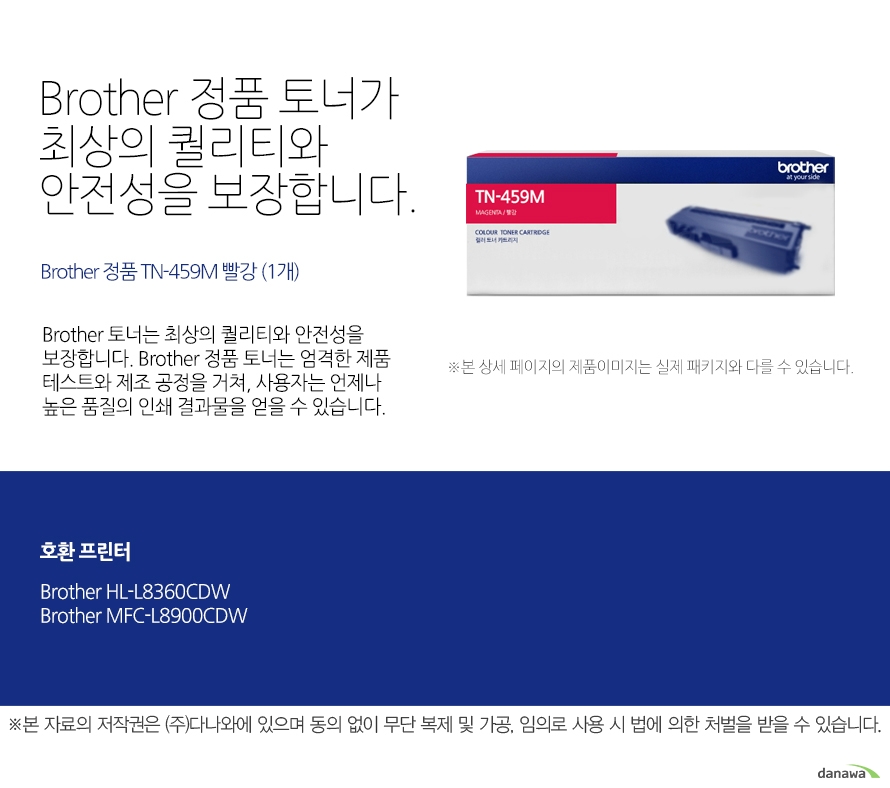 브라더 TN-459M 정품9K 빨강토너 MFC-L8690 MFC-L8900 CDW HL-L8260 HL-L8360CDW