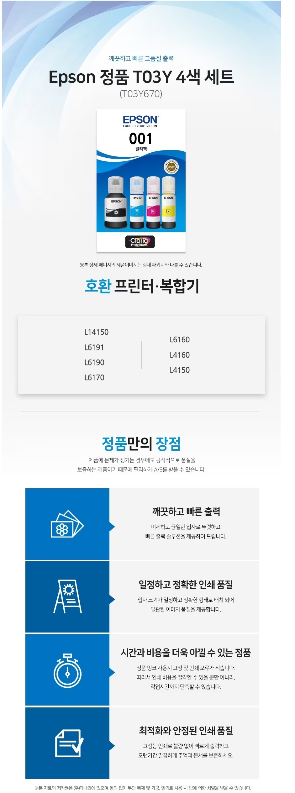 엡손 잉크 t03y670 검정 청록 노랑 진홍 1세트
