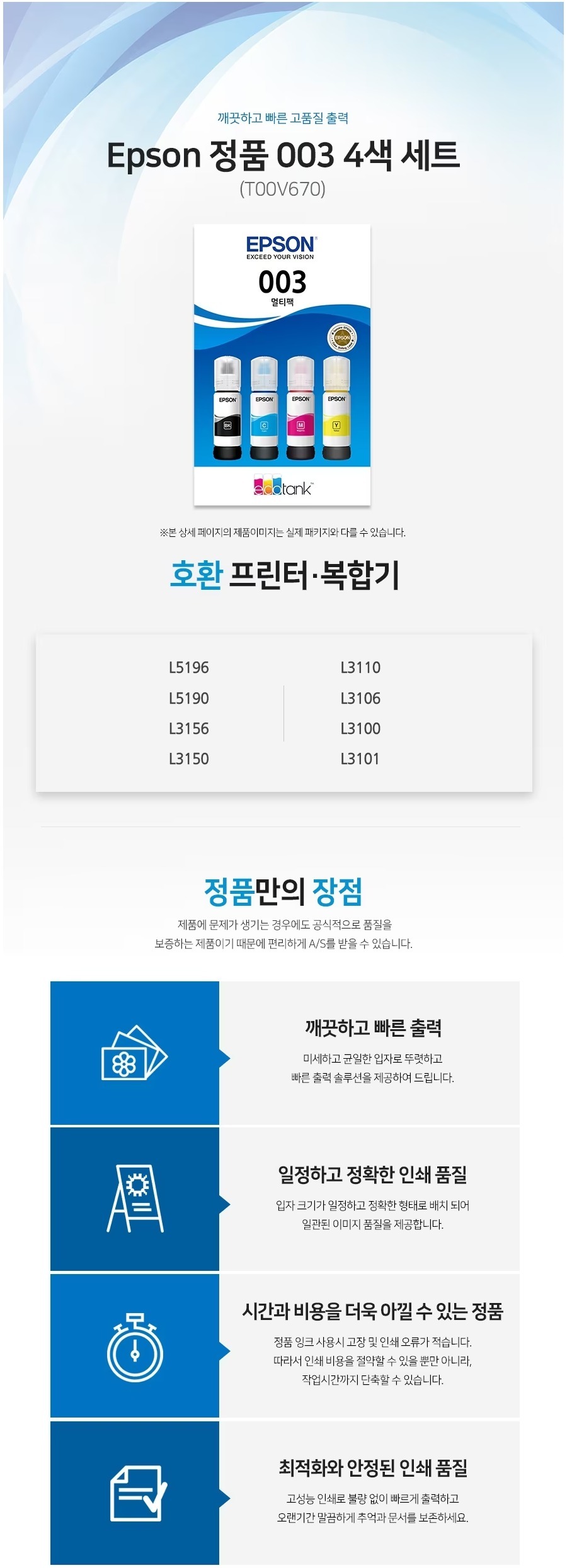 HOME > 전체상품 > 엡손 잉크 t00v670 4색 l3100 l3106 l3156