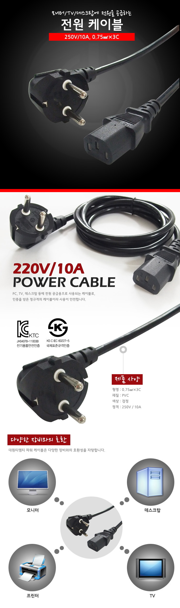 HOME > 전체상품 > 전원케이블 파워케이블 AC 220V (벌크/1.5M) POWER CABLE