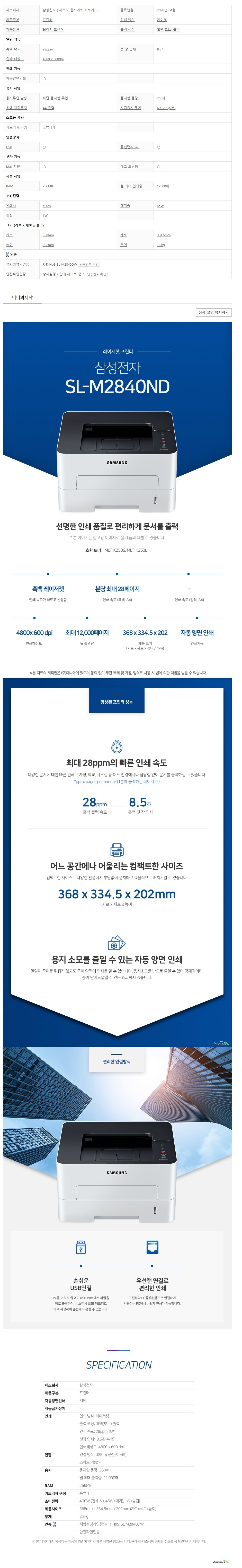 HOME > 전체상품 > 삼성 SL-M2840ND 흑백 레이져프린터 네트웍 양면 토너포함