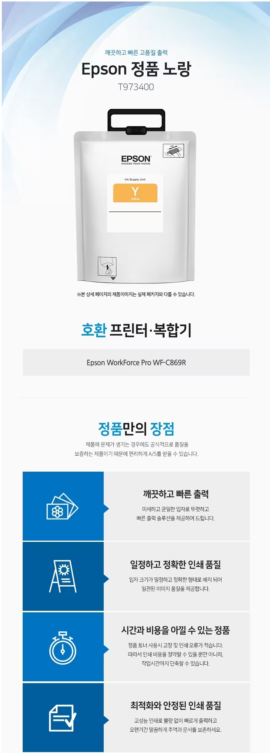 HOME > 전체상품 > 엡손 T973400 잉크 노랑 22000매 WF-C869R