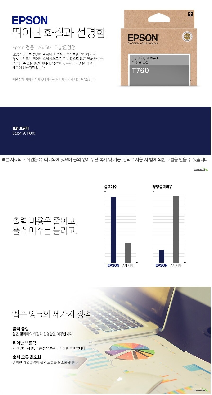 HOME > 전체상품 > 엡손 포토잉크 t760900 light black sc-p600 26ml 잉크 더 밝은 검정