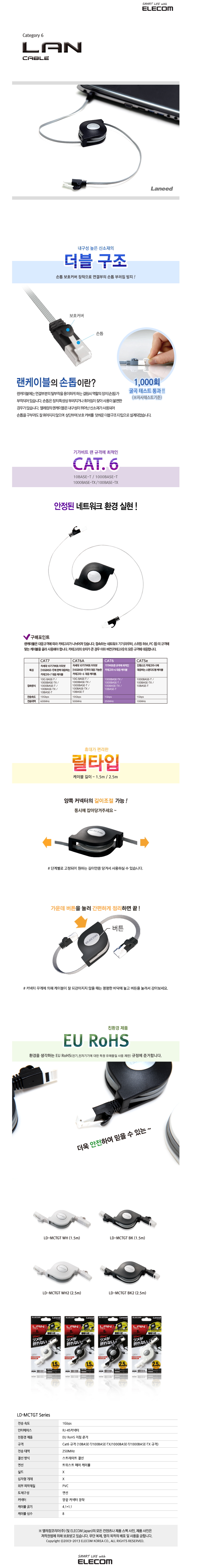 엘레컴 LD-MCTGT 릴타입 랜케이블 블랙 1.5m CAT.6