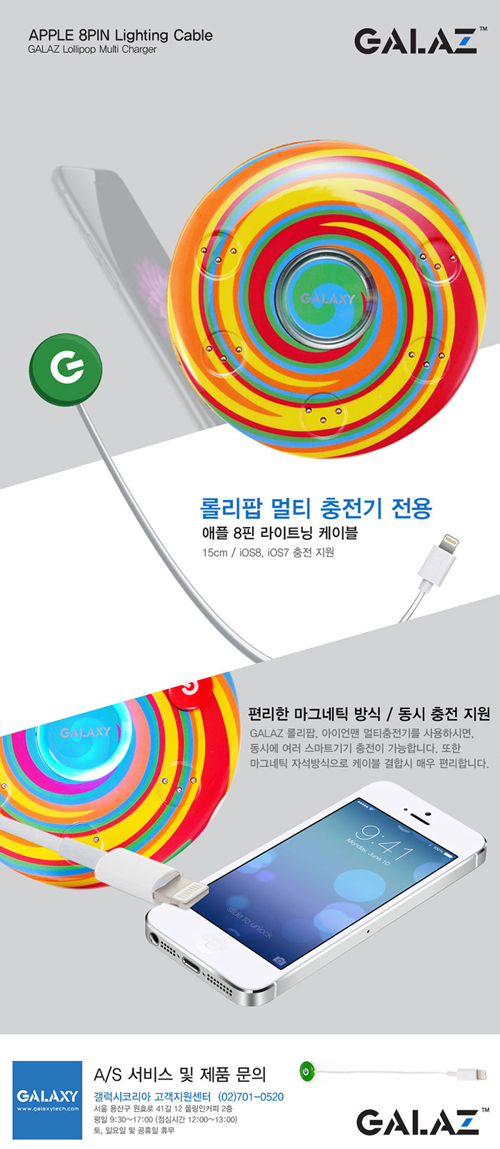 [당일발송] [갤럭시 롤리팝]롤리팝용 8P 케이블[정품판매점 KS]