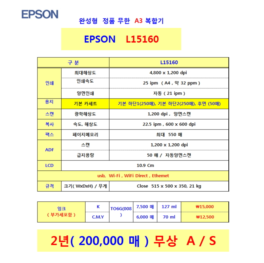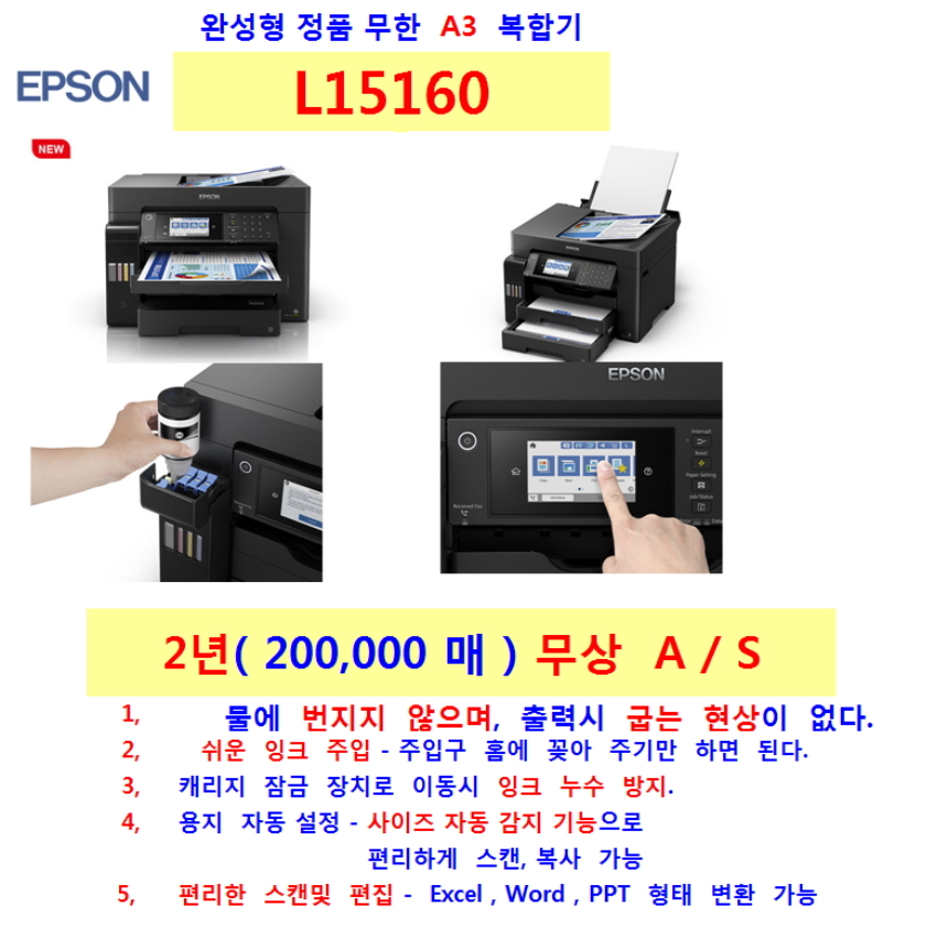 엡손 L15160 정품 무한잉크 A3 잉크젯 복합기 잉크3세트 추가증정 행사중